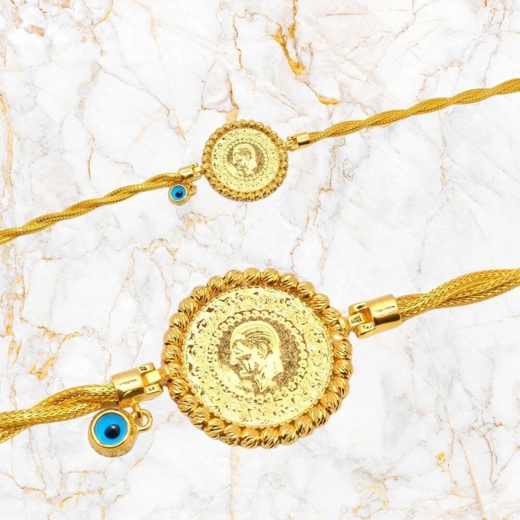 14 Ayar Altın Çift Örgü Çeyrekli Bileklik 8,82 Gram çeyrek dahil.