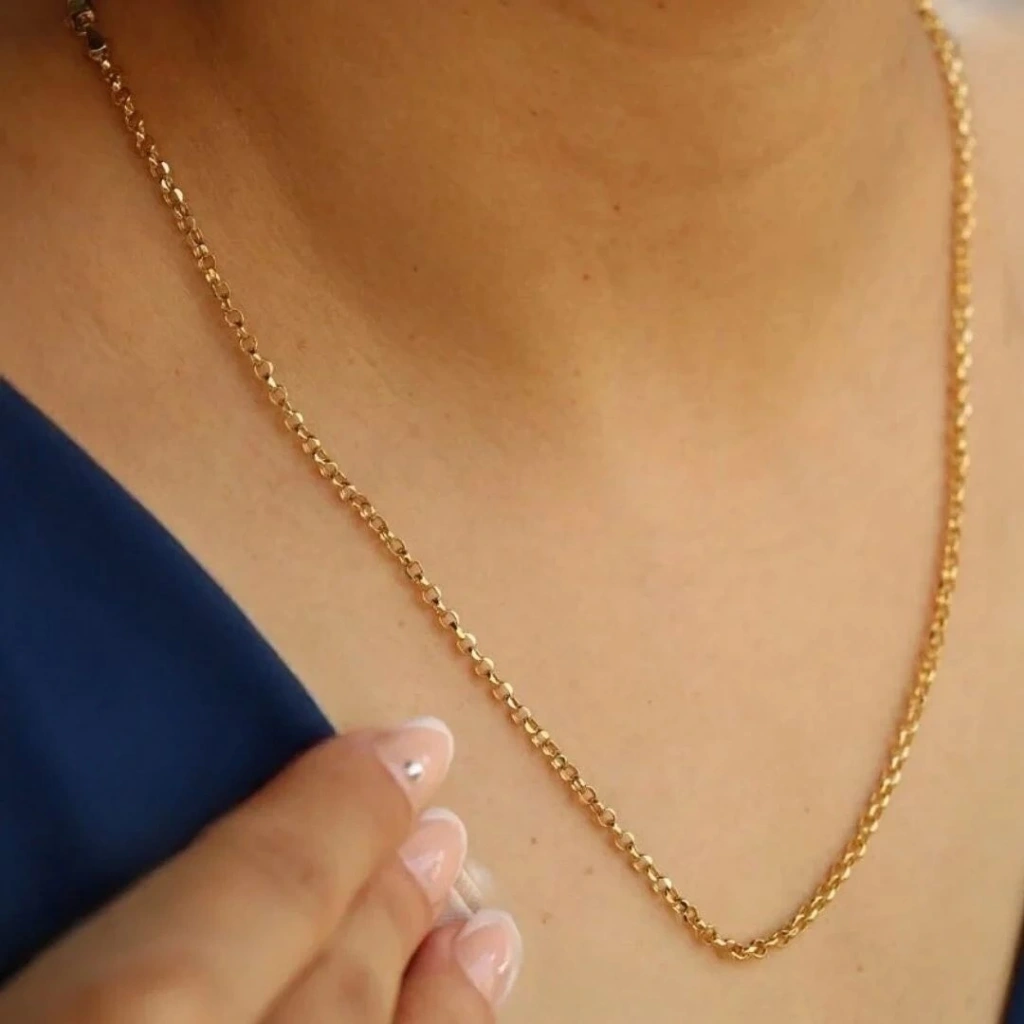 Zarif ve modern tasarımıyla her anınıza şıklık katmak için ideal bir tercihtir. 3,35 gram ağırlığında ve 14 ayar altından üretilen bu zincir, 50 cm uzunluğu ile hem erkekler hem de kadınlar için uygun bir seçenek sunar. Sarı altının zarif ışıltısı ile dikkatleri üzerine çeker.