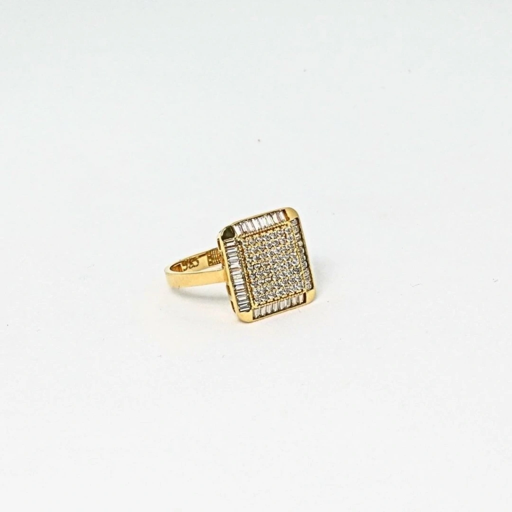 14 Ayar Altın Kare Baget Yüzük, 2,88 gram ağırlığı ve baget kesim taşlarıyla zarif bir ışıltı sunar. Sarı altın rengiyle dikkat çeken bu yüzük, modern ve sofistike bir tasarıma sahiptir. Kare baget kesimi, yüzüğün tasarımına eşsiz bir şıklık katarken, göz alıcı detaylarıyla parmaklarınızı zarif bir şekilde süsler.