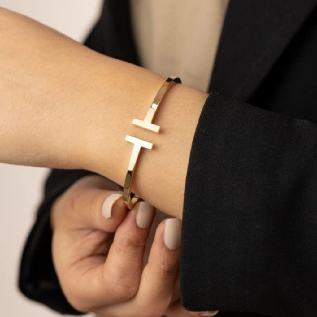 Evla Kuyumculuk, şıklığı ve özgünlüğü bir araya getiren özel tasarımlarından biridir . 14 Ayar Altın T Kelepçe ile size benzersiz bir takı deneyimi sunar . Bu kelepçe, 14 ayar altından üretilmiş olup, yaklaşık olarak 7,36 gram ağırlığındadır. T Kelepçe tasarımı, modern ve minimalist bir stil sunar. Altın zincirlerin birleştiği noktada oluşan T şekli, yüzüklerle birleşerek şık bir görünüm ortaya koyar. Bu kelepçe, bileğinizi zarifçe saran ve dikkat çeken bir aksesuar olarak öne çıkar.