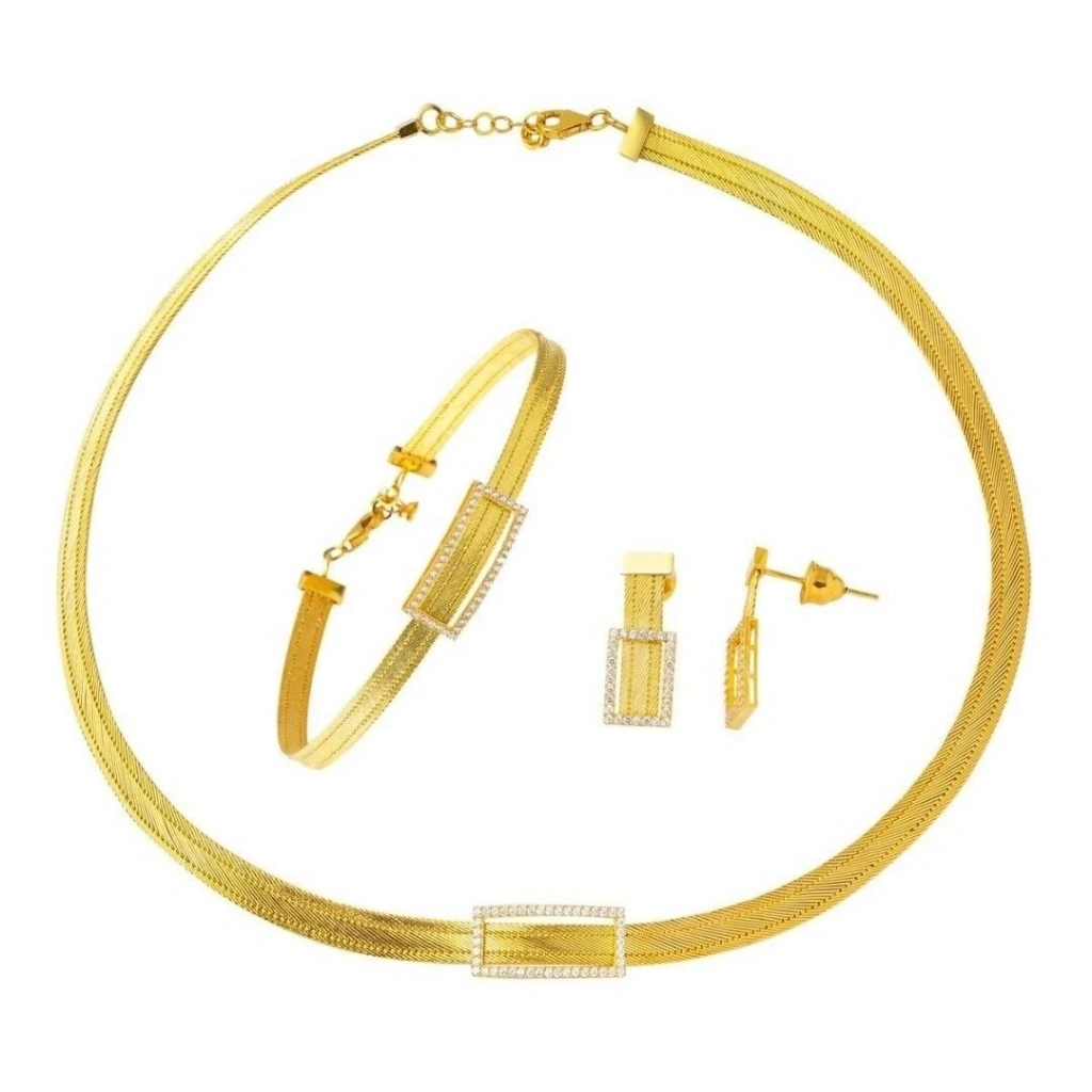 14 Ayar Altın Taşlı Trabzon Hasır Set Takımı 26,50 Gram: