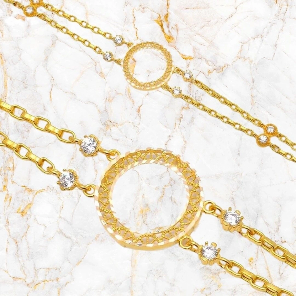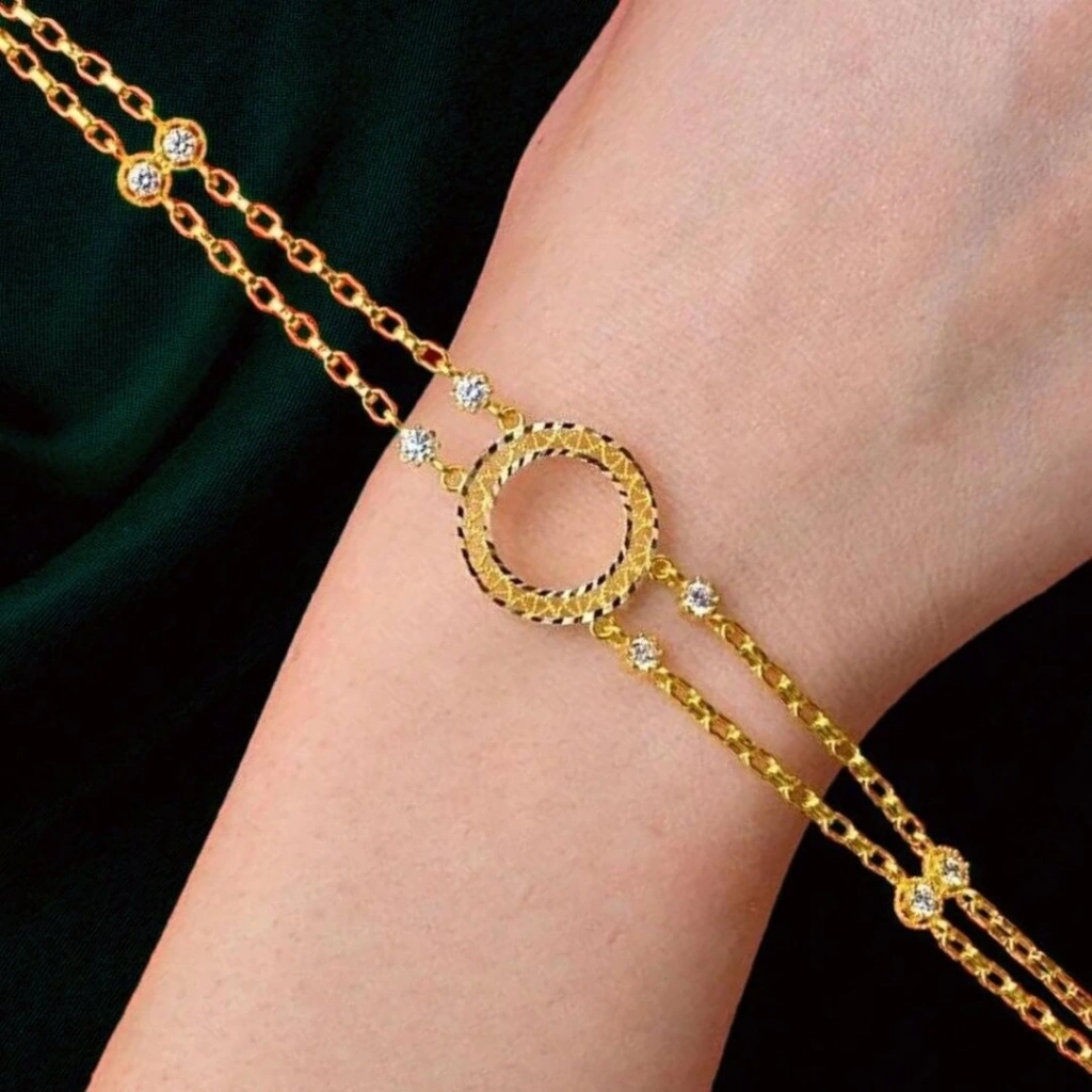 14 Ayar Altın Tek Çerçeveli Çeyrekli Bileklik