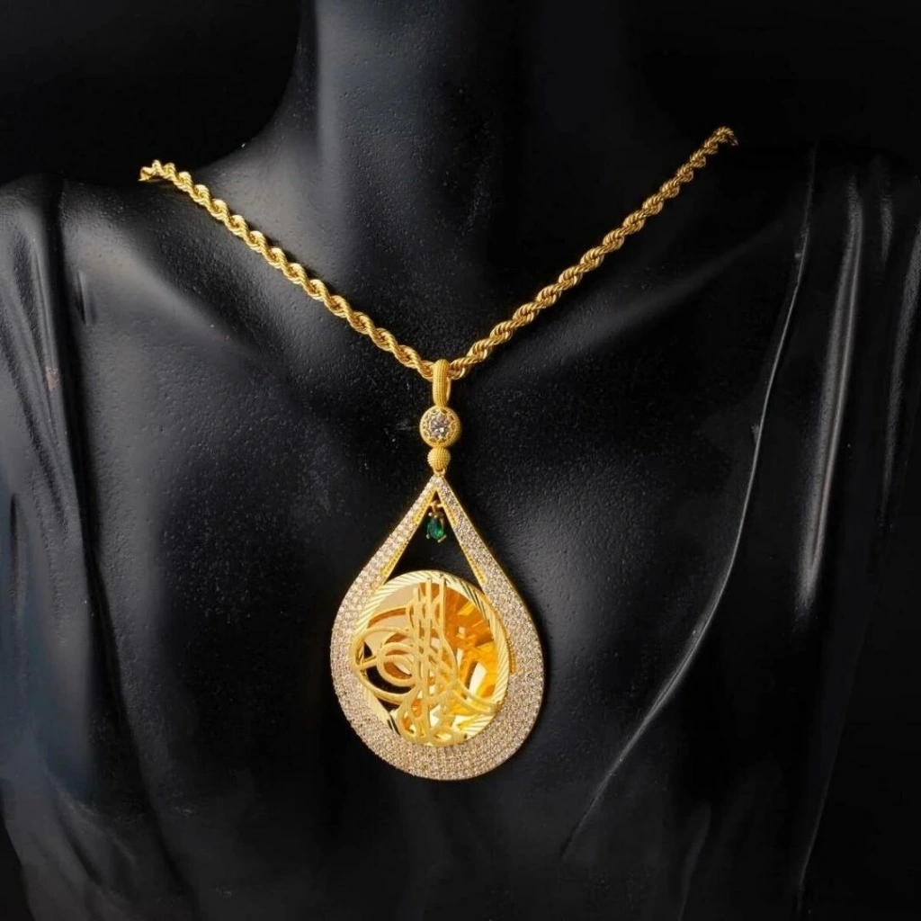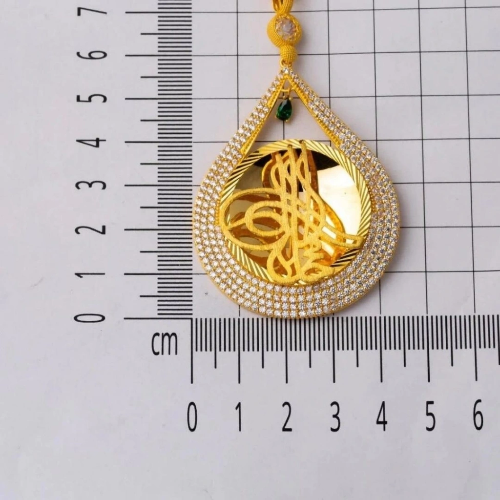 Kolyenin merkezinde yer alan zarif damla şekli, göz alıcı bir tasarım sunarken, üzerindeki Tuğra sembolü ile birleşerek anlamı daha da vurgular. Tuğra sembolü, Osmanlı İmparatorluğu'nun tarihi bir sembolüdür ve güç, otorite ve zengin bir kültürel mirası temsil eder.