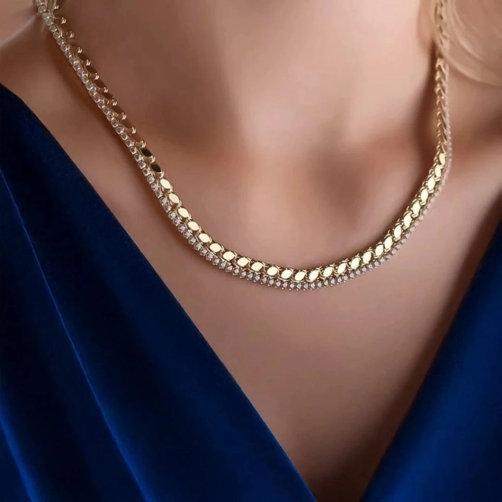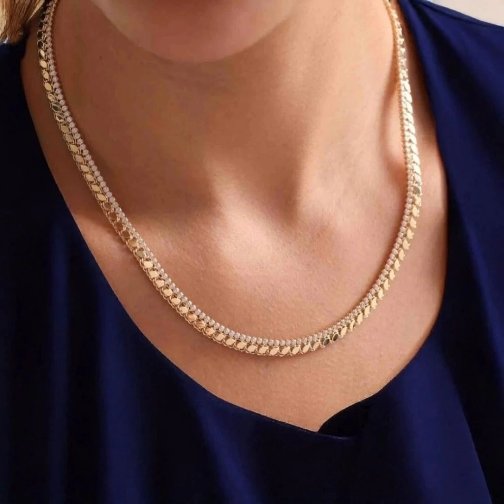 • Altın Pullu Suyolu Kolye: Klasik su yolu modeli, parlak pullarla modern bir dokunuş kazanmıştır.