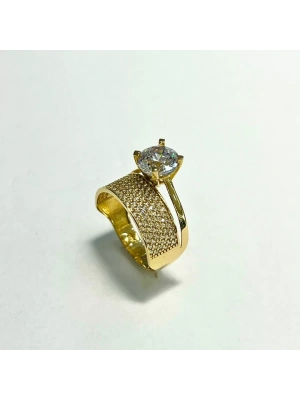 14 Ayar Altın Fantezi Alyans Tektaş Yüzük