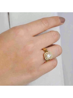 14 Ayar Altın Çok Taşlı Baget Yüzük