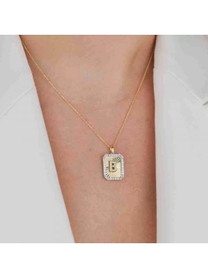 14 Ayar Altın Kişiye Özel Harfli Kolye Bagetli