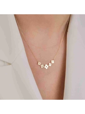 14 Ayar Altın Beş Pullu Yonca Kolye