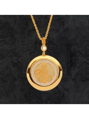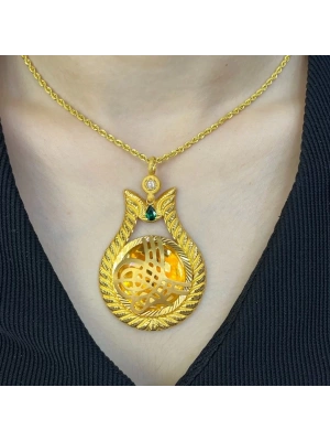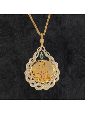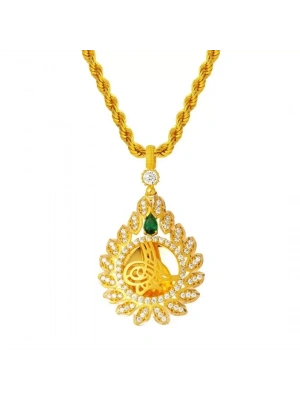 8 Ayar Altın Damla Çerçeveli Tuğralı Altın Kolye